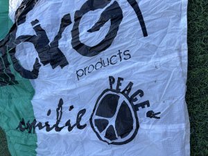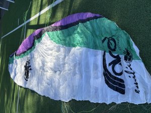 Been in the water a couple of times. Small tear at left wingtip. (See picture)