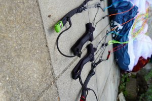 The wing is almost new, no scratch, always well pack and stored. Risers and lines are perfect. The string that hold the brackes has one gone througt pulley and you can see a little damage.