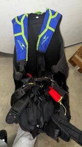 Incl. 180sq ft rescue parachute in good condition (has been checked and freshly packed by an interested party) and incl. round canopy as second rescue (removed, should be freshly packed).