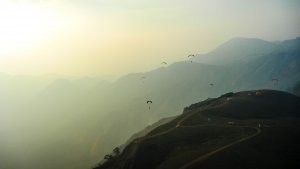 The site at Vagamon is situated at the hills of Kolahalamedu, 4 Kms (2.5 Miles) from Vagamon. This is a part of South India‘s Second highest peak namely the Amruthamedu. There is a 10 km long ridge with 3,000 feet from top to bottom. The site has steady winds in the South West Direction through out the season. The season starts from September and offers great flying conditions until Jan and again, from March to May. Vagamon boasts of cool climate during most part of the year.