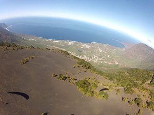 Takeoff is located on the top of the ridge, is around 500 meters wide and 300meters long. The ground is covered with small volcanic pebble stones. Therefore it is possible to do wagas if the wind is strong enough. Takeoff slightly above 1300meteres above ground and landing is located in the Frontera town at about 260 meters above ground. The air distance is around 5 kilometers and therefore the available altitude with a 17sqm glider is about 500-600 meters if a straight training flight is made. The spot is also fine for beginner pilot with a landing in Los Sargos on a long landing approach close the coast.